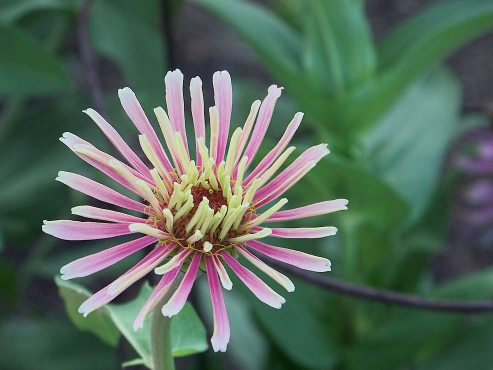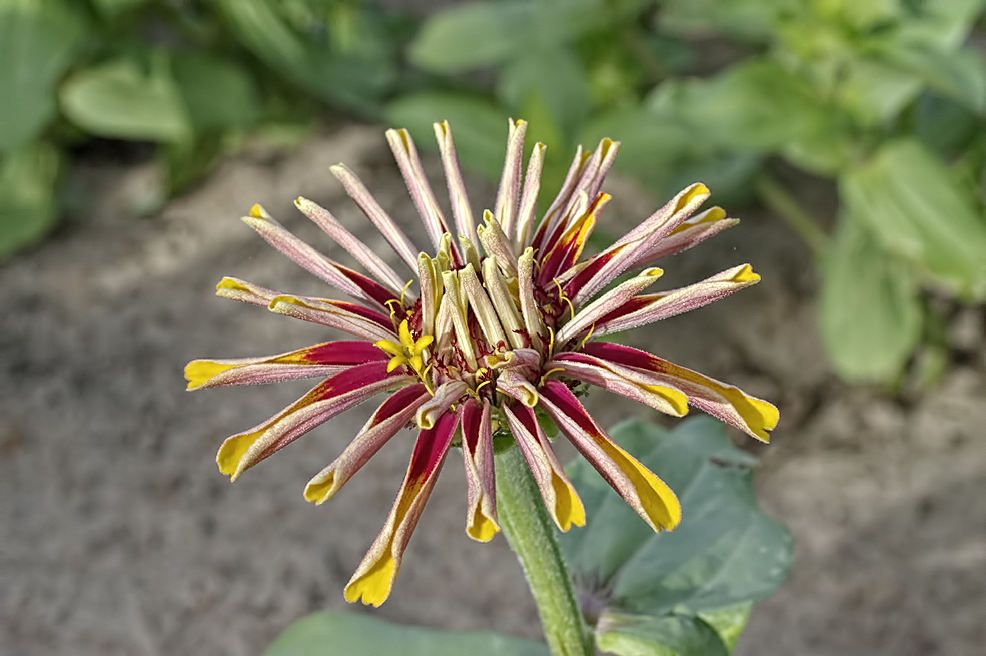 The only reason I am interested in these oddball zinnias is in case they can evolve into zinnias with several flower heads on a single stem. I have seen hints that such a thing might be possible, such as two flowers on the same stem. |