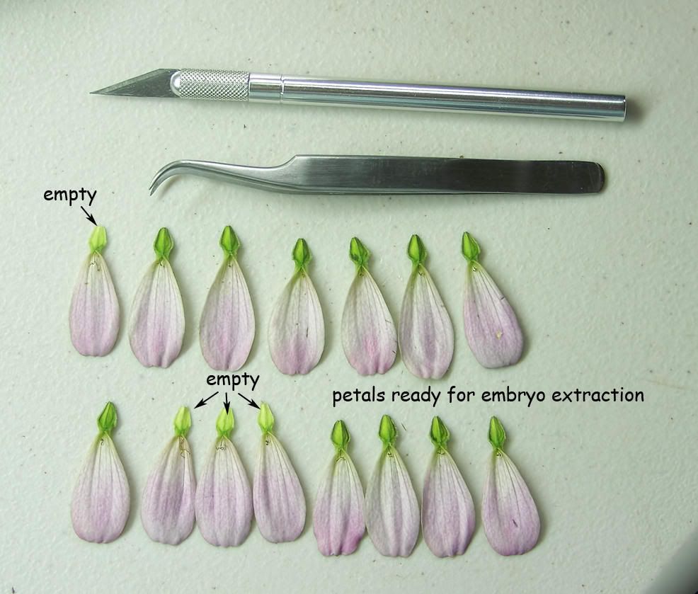 I will dissect those tubular petals in search of the elusive anther bundles. I have dissected a dozen or more petals from the petal seed progeny, so far with no trace of an anther bundle. More later. |