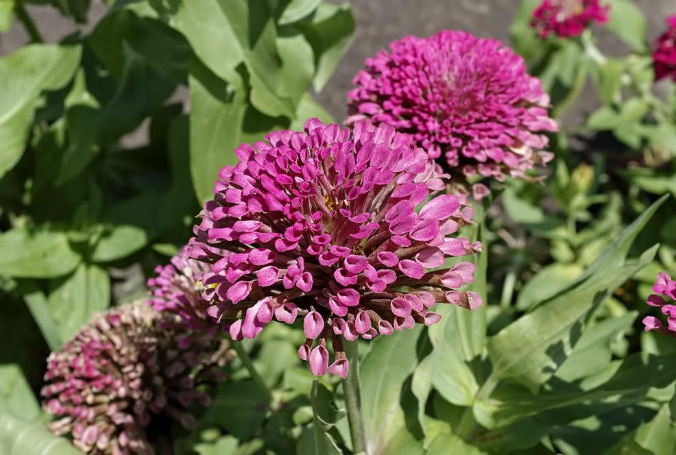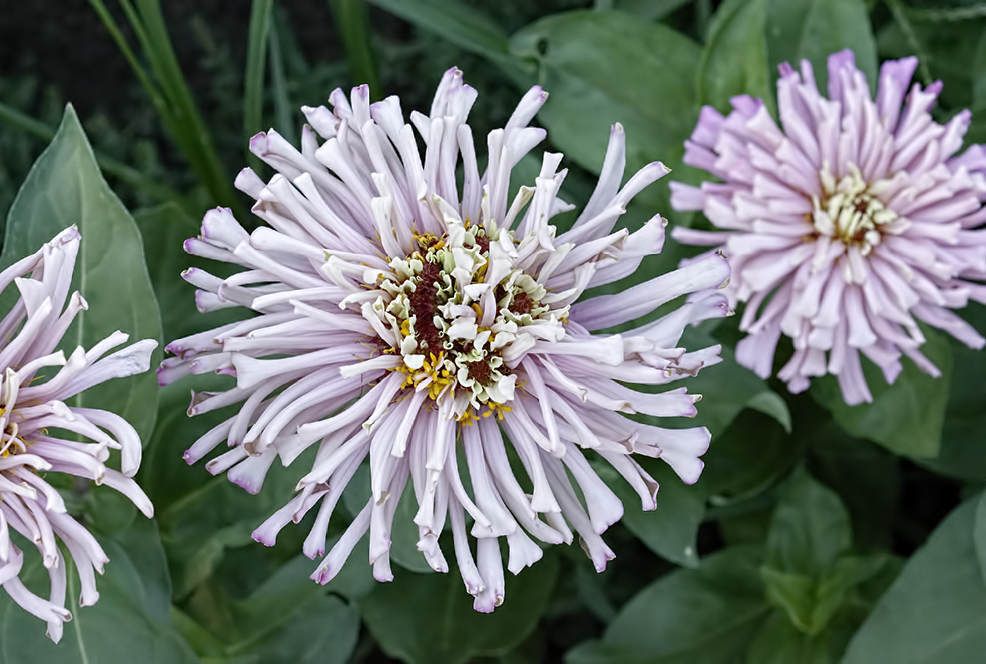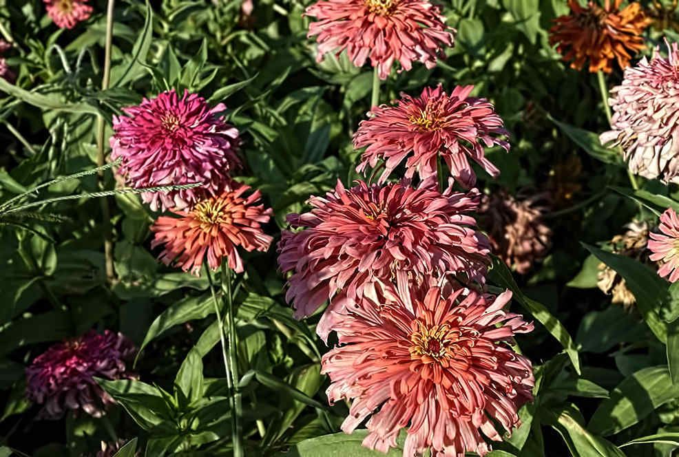 A good number of the zinnias here have shorter, curly petals toward the center.