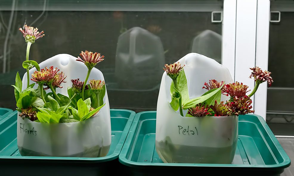 It is still an open question in my mind how these trumpet petals are able to get pollen onto their rather tightly enclosed stigmas. An anther bundle is small and rather compact, because it can fit within the neck of a disk flower pollen-bearing floret. I still think that some tiny insect vector could carry pollen into the thin tube of a trumpet petal, but that would be a tight fit for many ants. But there are some very small ants. And other small insects, like thrips for example, could be candidate pollen carriers. I hope the tubular petal seeds are produced by anther bundles, because any local tiny insects might not be available elsewhere. I suppose I should do some surgery on some trumpet petals, to see if I can find any anther bundles. I did split a lot of petals on E2 to pollinate their enclosed stigmas, and in the many dozens of petals that I opened, I didn't see any trace of anther bundles. However, I might have missed them, since they would be below the stigma arms, and I usually just split a petal enough to expose the stigma arms and occasionally a short part of the stigma neck. My goal is to breed some tubular petals that are much larger, and potentially with wider diameter tubes. I am also looking for larger florets in scabious types. In the next week or two, I plan to plant a few more zinnias for Fall growing. The middle of August will probably be my cutoff date, unless I am planting specifically to produce cutting material to bring in before a killing frost. ZM |