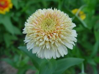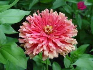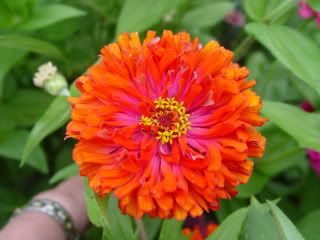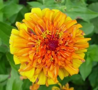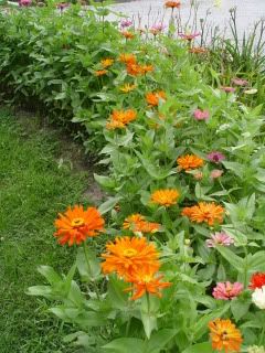 | Cameron, "I didn't buy any orange zinnia seeds, but I have a few of these soft orange zinnias... If I want to find seeds like this, any suggestions on what to look for?" Most mixtures of zinnias include some orange zinnias, but for an inexpensive commercial source of orange cactus flowered zinnia seeds for landscaping use, Zinnia Inca is one choice. For orange dahlia flowered zinnias, one choice is the Orange Benary's Giant. I am sure there are other orange zinnia options, but those are the ones that come to mind right now. Another suggestion is to save seeds from the orange zinnias that you now have. Tie a piece of yarn on your favorite specimens, or in some other way tag them for later. That way, you can become your own breeder of orange zinnias that suit your taste. You could just let the bees and gravity do your pollination, or you could self-pollinate your favorite oranges, or make crosses between your favorite oranges, for a possibly better orange breed. Zinnias have a lot of different shades and tints of orange, as well as different plant habits and flowerforms, so you could develop several different orange strains. ZM |