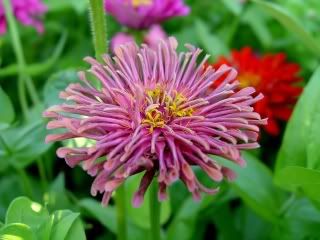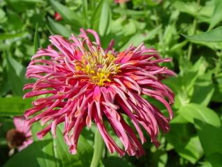 | Good morning! I agree with ZM. HC, I like to see what you're getting through your photos. I look forward to hearing of your work toward a shaggy bicolor! Also, as you mentioned, I will keep seeds of some of those suspected peruviana-tenuifolia crosses and see if they will grow. These little "hybrids" are bearing lots of fat litte seeds! I haven't tried, although I guess I could, plant a few as there are still plenty of warm days left, and at least I could check on the germination.. And, ZM, I agree with HC, your pictures are very nice and definitely show us the beauty of zinnias--yours in particular! Some of the colors in your flowers are so rich, and the slender form of some of them is unique. I have a question for all of you reading the thread. Every year, my zinnias, especially the first ones planted in May, begin to look pretty ratty--thanks to brown spotting and decimation of the flowers by the birds. Now they are a miserable sight! Has anyone done a severe cutback of zinnias this time of year? As in four foot high plants being cut down to two feet or so? I have cut back annuals like geraniums, petunias, and pansies this way, but never zinnias! I am sorely tempted to try this in the hopes of getting somewhat a renewal of the plants for September and October, but would like to hear your opinions and experience in this here! JG
