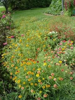 and a small plot of Benary zinnias that may be used for crossing with other types. These plots are full of bumblebees, honeybees, and hummingbirds, as well as finches and a few swallowtails and monarchs. These are some of the reasoms they are such a pleasure to grow!
