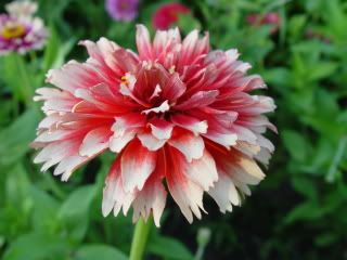 | JG, "But you probably also add specific goals as you go along and see particular traits you would like to incorporate in the flowers you have." Yes, occasionally new zinnia characteristics just appear in an unplanned way. Recently I had a new bloom with extra wide petals, and this is its picture.