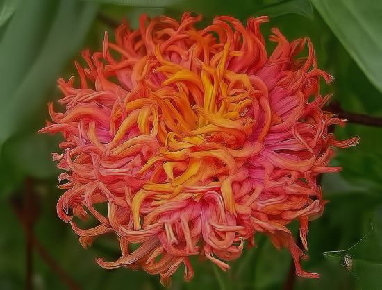 Cactus zinnias also have a flower form that I refer to as "chrysanthemum flowered" for no good reason, because I don't recall seeing chrysanthemum with that looked like that. I also refer to that form as "fantasy flowered" because many years ago there were cultivars that had that form. This is a rather extreme version of that flower form, whatever you call it.