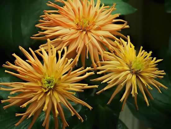 | Hi! I've got lots of color now in the zinnia patches, but the mildew is spreading with with our cool, dry nights. A few more of my cactus zinnias blooming now are shown here: