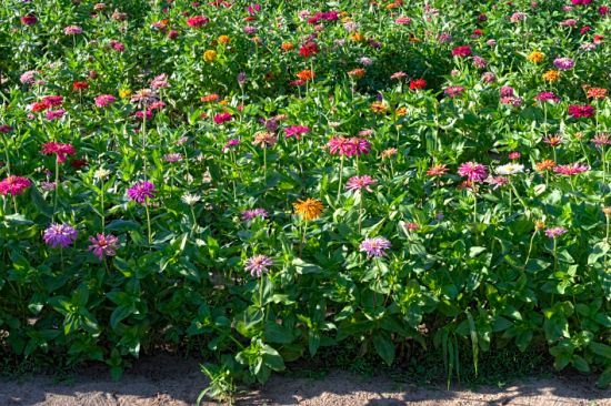 When the zinnias are crowded like that they tend to support each other, but as I cull out a lot of less desirable specimens, the remaining "keepers" will be somewhat tall and need support. Sometimes I use zinnia cages to support them in our Kansas winds. |