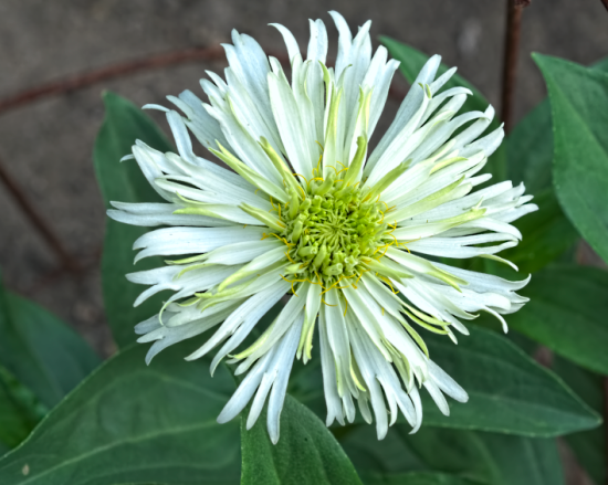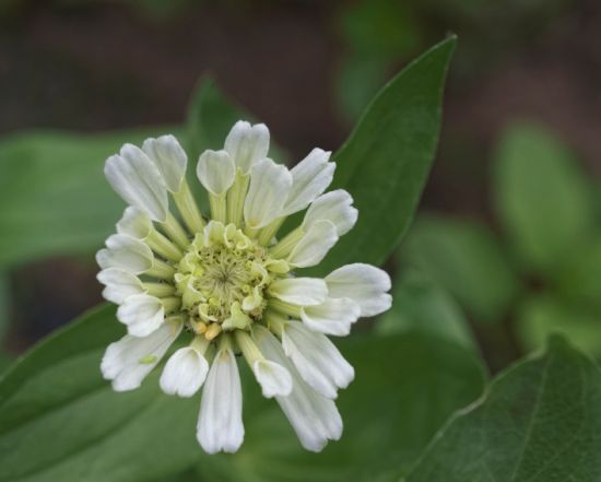 | If you remember my green zinnia from earlier, this is what it looks like now. The petals are still kind of rolled up. Pardon the horrible lighting! |