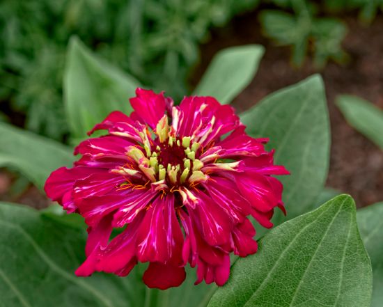 | Goclon, This is only my second year growing zinnias, so it's not too complicated. I had Purple Prince and Uproar Rose with some Zahara Starlight and Profusion Cherry. There was one stray pale yellow, medium height pom pom shaped plant, as well. These "marbled" blooms appear to be all on one plant. I know nothing about which varieties are able to cross with one another, so maybe you all can figure out what happened to produce these. I do plan to collect as many seeds as possible from those blooms, but I need to let them get pollinated. Thanks for your interest in my humble zinnias. Martha |