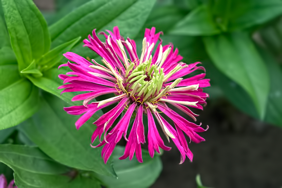 | Hi Telescody, That little zinnia has a very unique look. Those big paddle-like petals coming out of that little center give the flower a cartoon-like flavor. Like no zinnia I have seen in a seed catalog or on a seed packet. Thanks for posting its picture. You did a good job of showing us a close-up view. ZM |