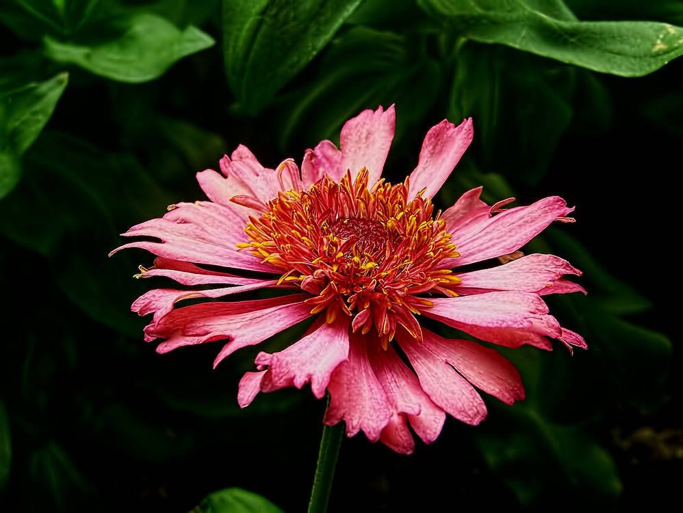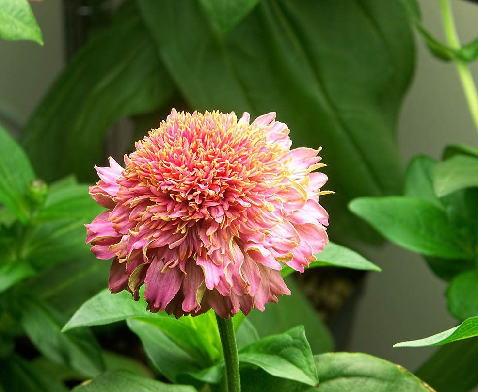 Another zinnia that gives some very interesting crosses are the scabiosa flowered strains. None of them have commercial strains that have a high degree of purity, so you can expect a high percentage of off-type specimens with them, but they are a rather small zinnia (in flower size) that benefits from being crossed with larger zinnias. The advantage of adding a third zinnia to your mix is that you have three possible crosses versus only one for two types. And if you add a fourth type, the number of different combinations jumps to six. The more the merrier. This is one of my specimens with scabiosa flowered heritage.