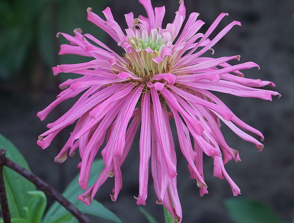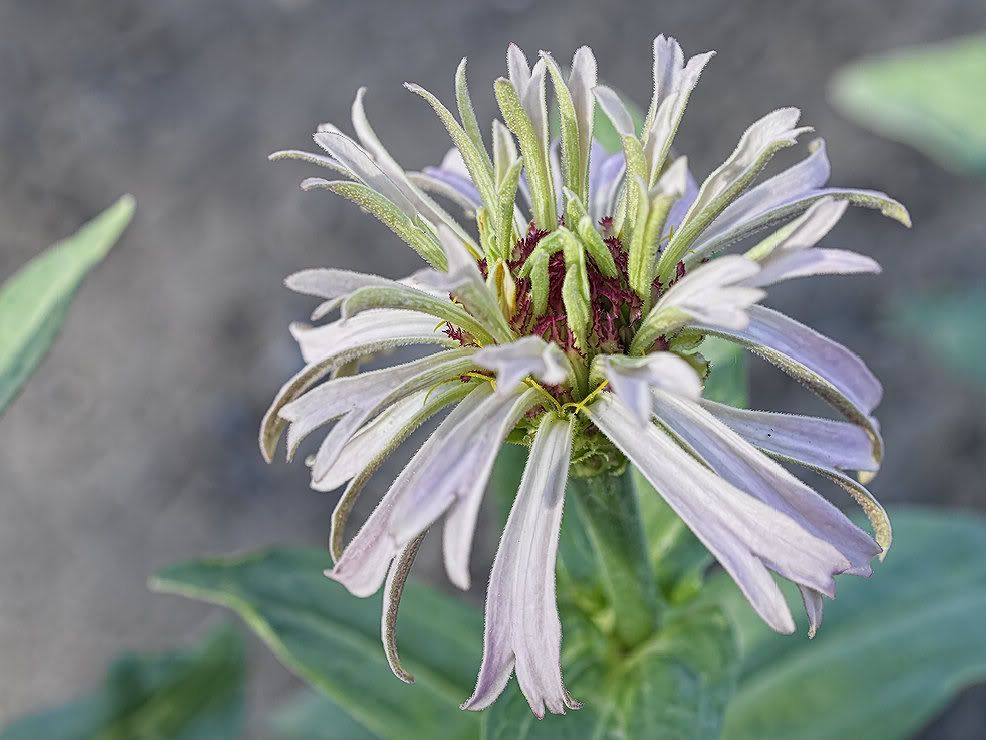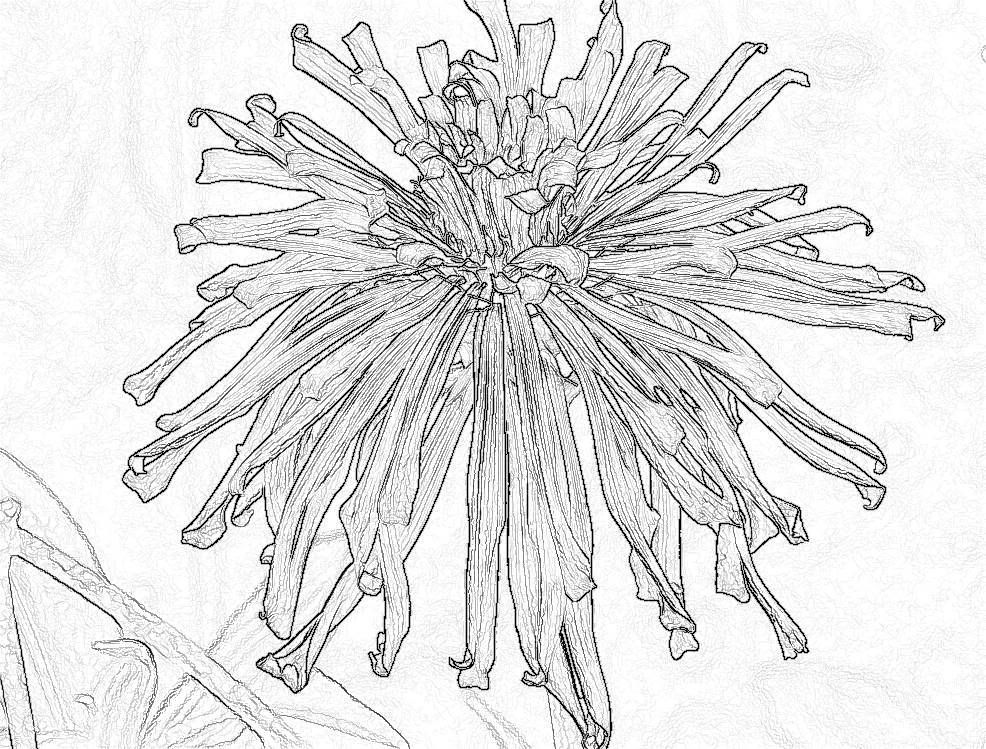 That is my "Shaggy Dog" zinnia from year before last. It had some impressively long dangling petals that had a kind of corrugated structure. That should give sketching software a workout. |
