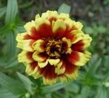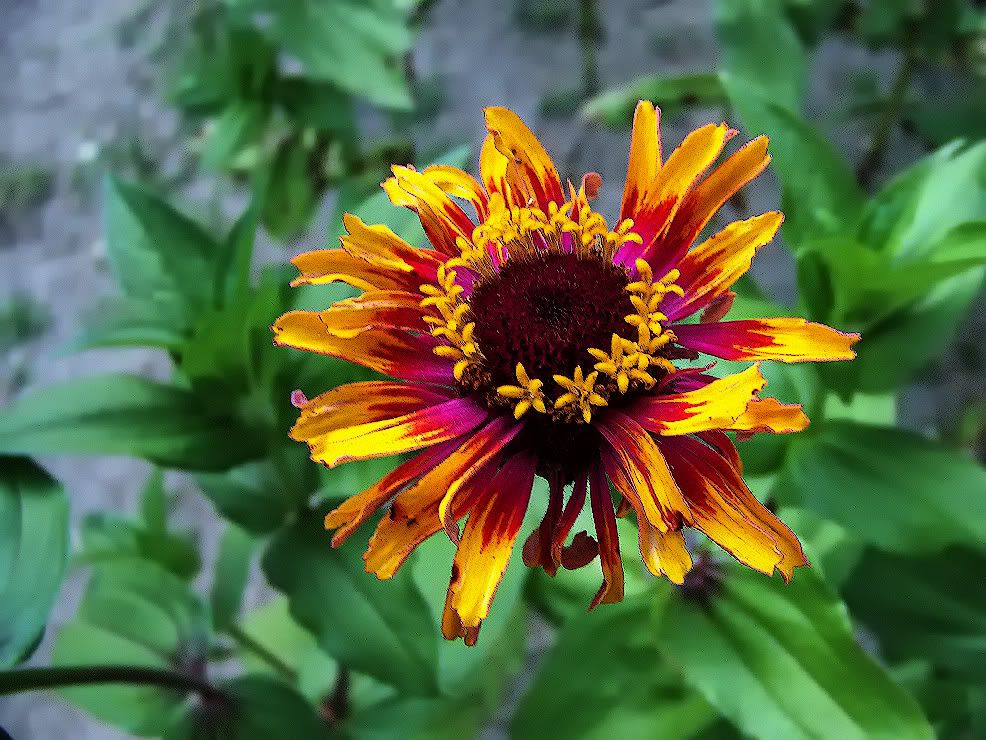 It has been foliar fed, and so have the zinnias behind it, so they have a healthy green look. It is "throwing" a little pollen, but I like the petals and the colors, so I am using it as a breeder. MM |