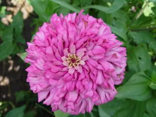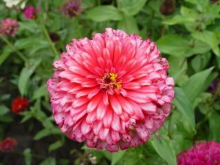 | MM, when you said Persian Carpet you meant the first one first? I think Persian Carpets are bicolor, but I wouldn't call that color "pink" though, so I am not sure if you meant the second one. Actually the colors (of the first one) came up prettier in the picture than in real. In the real flower, the colors are more like a bicolor coreopsis (or even similar to a marigold colors), that is, the center is more brownish than orange or pink. JG, since my original seedlings were eaten by slugs, I just went to Walmart and bought a mixture packet. It is called "Mini-Zini Mixture." The description says "this mix of Thumbelina, Button Box, Pumila, and Lilliput combines four of the most compact Zinnia varieties available. Flower types are beehive, fully double and semi-double. Color range of pink, red, white, yellow, orange and scarlet." The flowers are small though. |