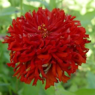 | ZM, The above flower is pretty--and I can see that there will still be more larger than usual florets on it! I hope I will get at least one true scabious flower this summer, but I don't know--it doesn't look hopeful! We continue to get rain and hot temperatures, and some of the zinnia seeds that I have been putting in to fill empty spaces in the garden have germinated in two days under these conditions. The Peruvian zinnias continue to bloom heavily. Interestingly, about 98% are red, and the others yellow, although last year I had about a 50-50 distribution of yellow and red. I suspect that red must be the dominant color here and that there must have been a lot of cross-breeding going on. I guess I will be able to see if that happened when observing the offspring of the 2011 plants in 2012. My whirligigs are just starting to open now and I am seeing buds in many of the other large zinnias. With all the butterflies my zinnias attracted last year, I decided to add plants to the garden that would support the caterpillar stage. So, now I have plants like dill, fennel, rue, spicebush, pawpaw, pipevine, and snapdragons. Nearby also are hackberry trees, several kinds of milkweed, violets, and plantain, etc. It will be interesting to see what happens! Looking forward to seeing more of your zinnias.. JG |
