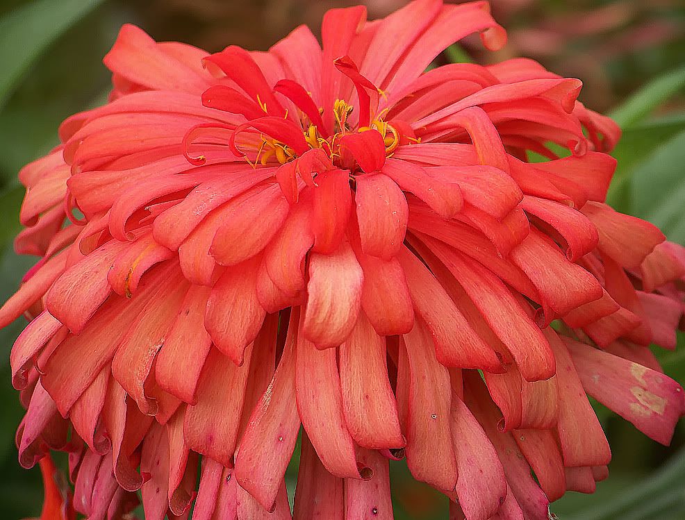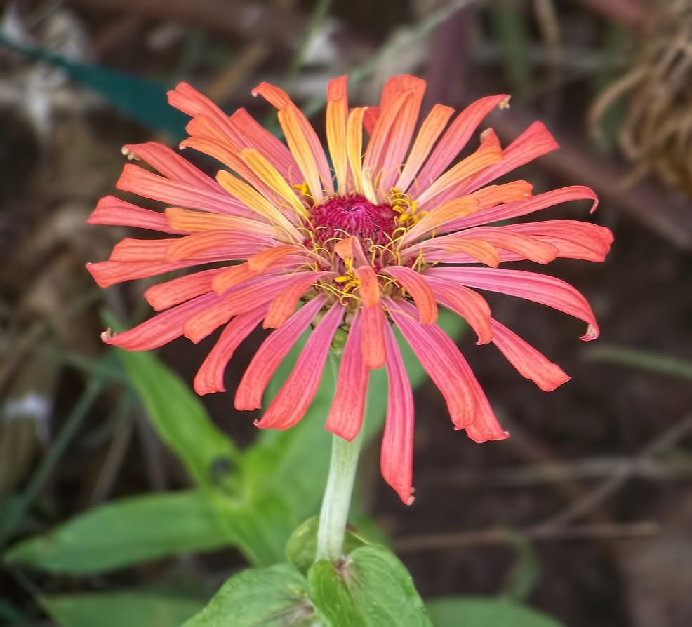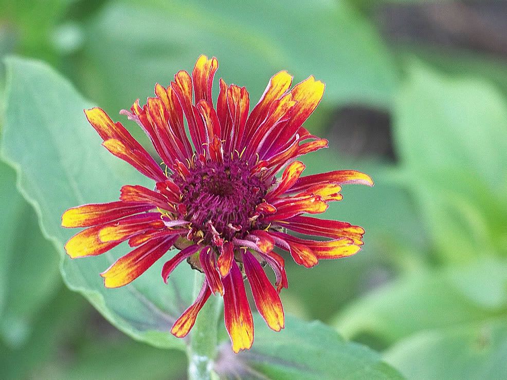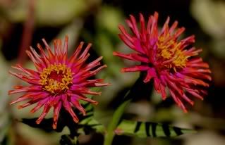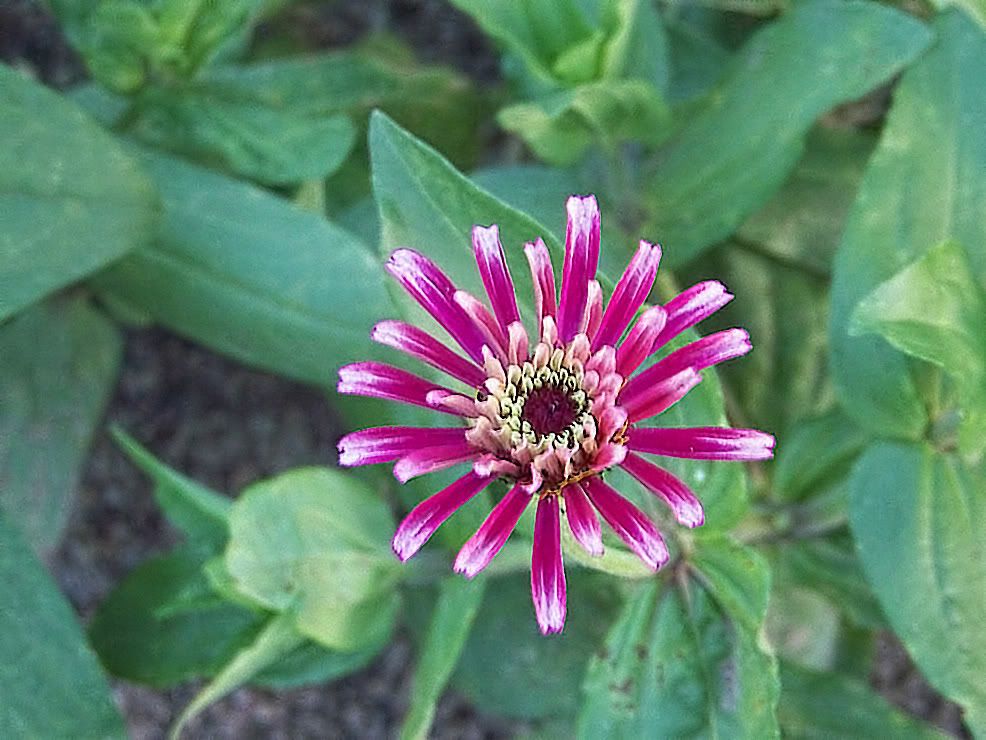 | ZM, The last flower is pretty because of the unusual form and the combination of colors. It seems that there is no limit to the number of different flowers we can get with zinnias! I noticed today that a new Extreme Roll flower appeared. Flowers in my garden are becoming smaller and smaller because of the harsh conditions out there..Now we are back to days in the nineties again! No rain for many days....
