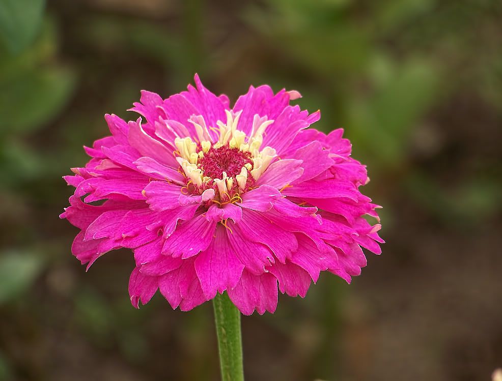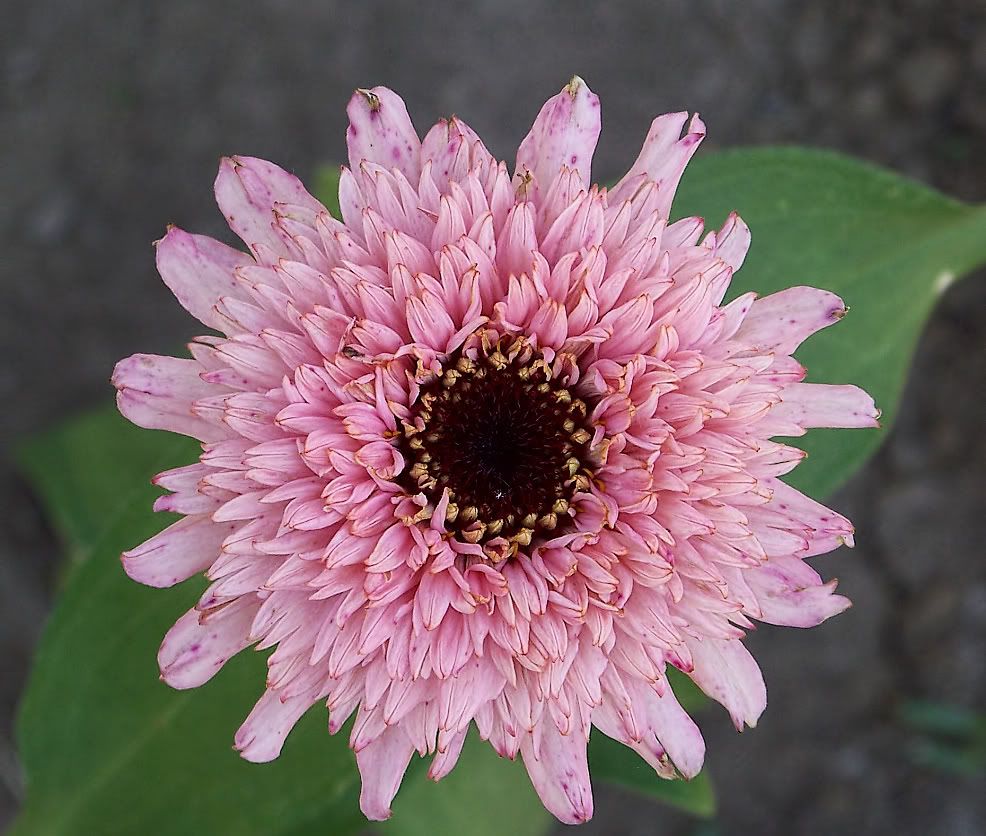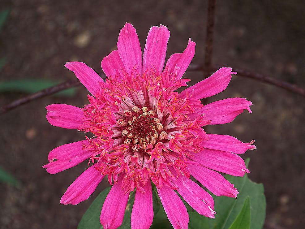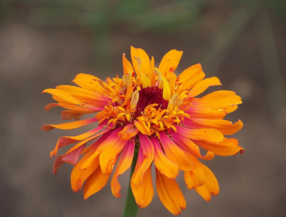 It is pretty, but the petals tend to hide the two-color interest. I will try crossing this one with some aster-flowered zinnias to get those colors in a more open form.