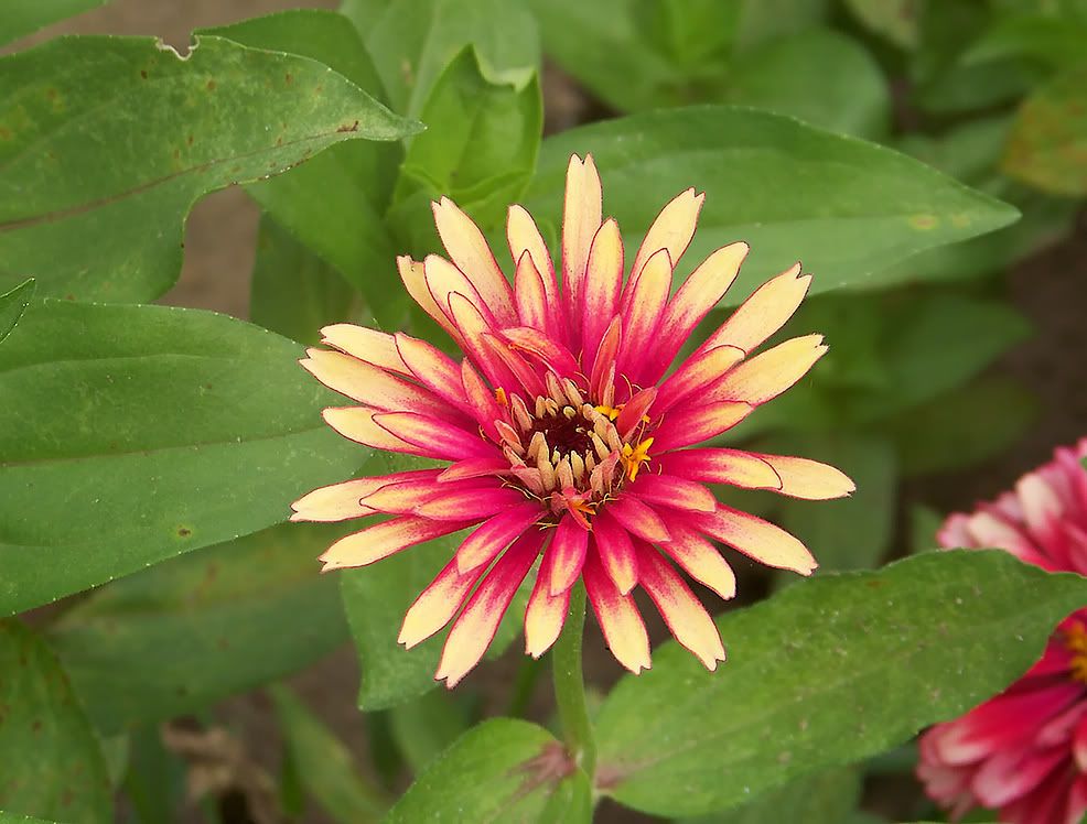 I like new flower forms in zinnias, and this is a flower form that I refer to as "aster flowered".
