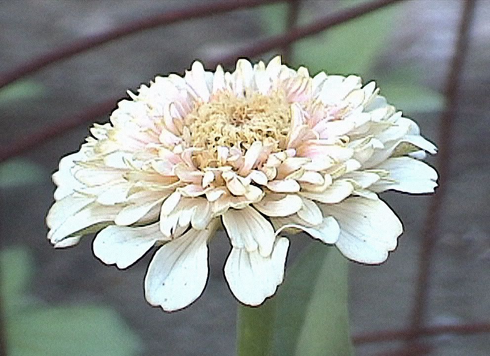 This specimen has a combination of white and dark rose that I think has a lot of possibilities for improvement to create white zinnias with colored petal tips. ![]() |