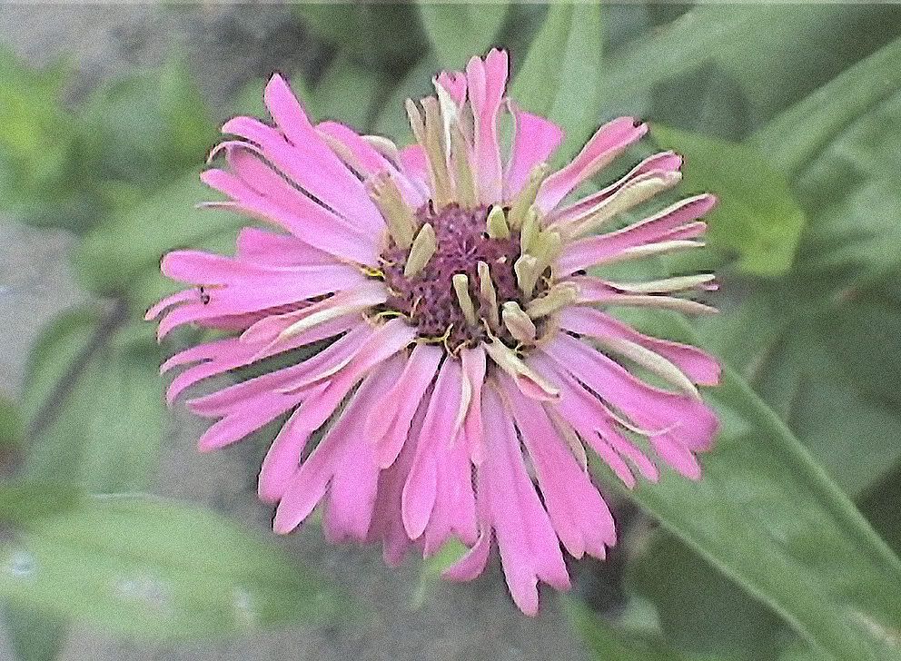 | This is another of the "toothy" zinnia blooms.