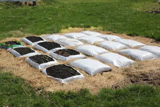 | Hi TC and ZM, You both mentioned the strange weather. We are having that in Indiana, too. We've had a very mild winter, and an incredibly early spring. I can easily say we are a full month ahead of the usual growing season (so far!); that is, the trees are leafing out; the forsythias, crocuses, daffodils are past their peak; the tulips, redbud, crabapple, dogwood, plum, pear and cherry trees are in bloom; and the lilacs, apple trees, and peonies have buds. I am weeding the gardens now, and am seeing that there are volunteer zinnias coming up and that many of my annual plants have overwintered! I noticed in the T&M catalog that there is now a Queen Red Lime zinnia in addition to the the Queen Lime, but I will stay with the mixed offspring of the Queen Limes I had started several years ago. I haven't started any zinnias indoors this year. I usually do that when I have bought expensive seed (like 10 seeds in a pack) and I want to make sure I get as many as possible to grow-- so I set out one seed per peat pot under 14 hours of fluorescent light and a heating mat underneath--for transplanting outdoors. I have raised zinnias to maturity indoors, but not with 1/100 of the success of ZM, so I will be content to follow his postings! The last flowers, the golden and the pink, are very pretty! ZM, you have many lines of pretty, non-type zinnias! TC, usually I till up my garden really well as early as is possible and when it is dry. Then, before it's time to plant the zinnias, I till it up one time again. I always incorporate lots of leaves and grass clippings to make the soil softer and easier for sowing and growing every year. There is another way to start a new flower bed, as I have for vegetables this year....I don't really have a dedicated vegetable garden; I usually mix vegetables in with my flowers. But this year, I decided to start a new plot, not by breaking up sod, but by putting down 4-5 layers of black and white newspaper on top of the sod, wetting the paper down, then placing on top a 40 pound sack of topsoil (which has many holes poked into the bottom for drainage). I open a hole on top of each sack before planting, and leave about a two inch margin around the top, like so: