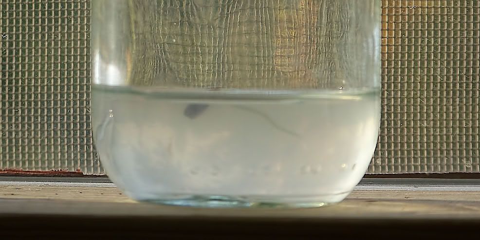 You can see the beginning of a fungus infection to the right of this seedling. Once a fungus gets started in a tissue culture with sugar in the agar, it spreads very rapidly. I learned belatedly that I was supposed to store my PPM (Plant Preservative Mixture) in the refrigerator, and that mine had probably lost all or most of its potency from being stored at room temperature for nearly two years. I will store the next bottle of PPM that I buy in our refrigerator, but meanwhile I plan to do some experiments with different Physan 20 dosages on zinnia seedlings. I am interested in zinnia seedling phytotoxicity for various concentrations of Physan 20. I used some weak Physan 20 (3/4 tsp/gal) on my seedlings last year, and I would like to increase that dosage this year.