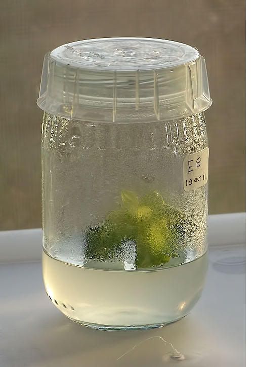 | Zenman, It is hard to tell exactly how that zinnia in the jar is doing from the picture, but a few things I have experienced: Plants in jars dont need roots, necessarily. They also dont need CO2, to varying degrees and depending on the plant. They get their sugar from the medium they are growing in. I am not saying that plants in jars dont photosynthesize, but they dont need to do it at anywhere near the level of those not sitting in a sugary gel. In my experience, some plants will grow fine (although not as fast or as big) with their vessel sealed. When I have used vented lids, I get bigger leaves and faster growth. If you want to supply co2 to your plants, it will need to be filtered. from the looks of your plant in the jar, I am thinking the hormone balance is pushing growth in a weird direction. I havent had a chance to try my hand with zinnias in jars yet, but I hope to soon, and I may have some more insight. Keep up the good work. Have you planted any seeds for indoor crosses this winter? Ryan |