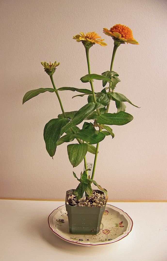 | MM. By the terminal bud, I meant the vegetative growing tip--some folks also call that the "apical meristem." I think you're right in that probably I should wait until the plants have more leaves before I try and get them to make vegetative buds coming off from the side (axillary). I use 40 watt coolwhite deluxe bulbs that have a little more red light than do the coolwhites. What do you mean by "overdriven"? I think, as zinnias prefer lots of light, that your selection of lights to make your plants bloom as they do is a good one! I like cactus-flowered zinnias, but it's been awhile since I purchased seeds, and I forget which company I got them from. But as the years have gone on, I see their traits coming out in the mixed offspring.
