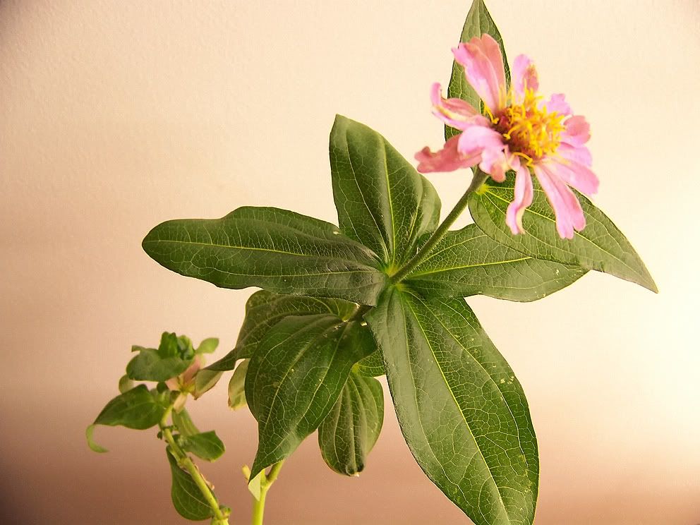 | JG, Well, that was a good Christmas. I mentioned I had seen some things in my cutting-plants that made me suspect the process of becoming a plant from a cutting is stressful enough to tend to induce mutations or at least interesting vegetative variations. I am going to present another instance of such a variation. As you know, zinnias usually produce leaves in pairs, except on the flower stem itself, when single leaves are not unusual. It is also not unusual to see leaves in threes on a stem. However, I had not seen leaves in fours until this unusual cutting-plant exhibited just that.