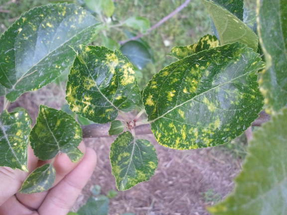 | The closer spacing will help a little but isn't full proof because the roots between trees will naturally graft to each other below ground. Essentially, once the virus is in your orchard, there is a likelihood it will show up elsewhere. Scott, the apple virus is the same, it expresses itself under stress. On many varieties, it never even shows, the only way to know if the wood is infected is by grafting an indicator variety to it. Granny Smith and golden delicious are two varieties that are highly susceptible and will show symptoms. My approach is to use kelp spray mixed with serenade to boost the immune system of the apple trees. The kelp provides required micro-nutrients and the Bacillus subtilis in serenade is also known to stimulate the natural immune response of plants. It won't get rid of the virus, but the plants are less affected. The virus removal process is straight forward but time consuming. Here is the process: