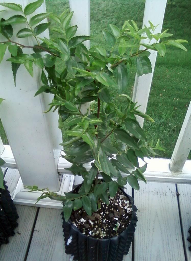 | RedSun, When most fruit trees are young seedlings, they are in a vegetative state. The energy collected is dedicated to establishing the tree. At some point in a trees life after it is well established, it become more important for the tree to reproduce and it changes to a fruiting state. At this point it is still growing but at a slower rate is a lot of energy focused at propagation. This is just a normal part of development. The field grown trees are getting full sun and have weed barriers and are caged. My deck gets good early morning sun but is filtered in the late morning and is in full shade in the afternoon. The field grown trees have a weed barrier in place that extends beyond the drip line. They only thing they don't get is supplemental water. Keep in mind that these Rootbuilder II grown Jujubes in the on the deck are only a few months old. They were well less than a pencil in diameter and not large enough to graft yet, but still produced fruit. This was so unusual, I asked the experts what was going on since the 5 year old trees in the field had not yet fruited. The container and supplemental watering were their explanation. Here are some pics:
