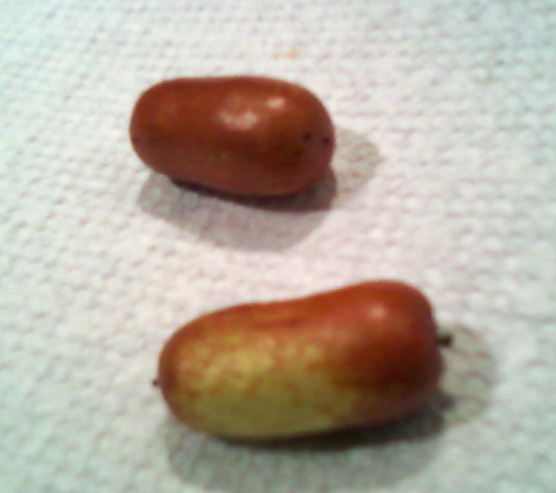 | I caged my first few Jujube trees just to make sure, but they don't seem to interest deer from a browsing standpoint. They are well outside the cage now and not touched. My field planted trees have not yet fruited, so I can't say for sure how deer will react once they do. However, I'm thinking that there are enough thorns to discourage deer from attacking the tree itself and simply eat the fruit when it falls to the ground. It is funny that my root sucker propagated trees fruit in the first year on my deck in rootbuilder II pots yet their parents in the field still have no fruit. I've considered air layering but I haven't found much documented success with jujube in the literature. The best success rates are root cuttings. Having said that, it may be possible based on what happened this year. I took a bunch of Tigertooth cuttings for Tony. I sent him more than he could use and still had a bunch left over. Just for grins and giggles, I planted a bunch of them in roottrapper bags. They all leafed out as you would expect from dormant cuttings. Eventually the leaves all shriveled up and died. However, after that happened, I got busy and didn't have time to dispose of them. They got watered as overspray when watering other seedlings. One day this fall I noticed a new leaf on one of them. I don't know if it will leaf out again next spring or not, but this occurred well after the initial leaves had died, so I'm assuming there must be some rooting occurring with that cutting. I guess time will tell. |
