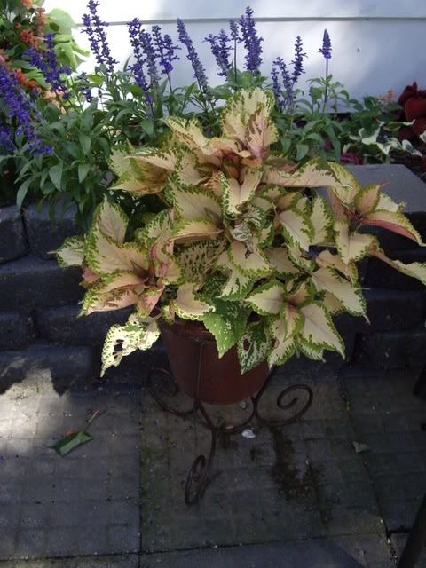 | Michelle, thanks! That coleus is 'Moonglow' also called 'Aurora'. Your specimen is gorgeous! So, guess what? I lost mine last year and if you have a cutting to send me that would be terrific! I can trade you some fuchsia or other coleus cuttings if you'd like. Let me know if there is any particular variety you'd like. I've got some good looking cuttings of 'Falklands' and 'Bicentennial' right now as well as some 'Golden Marenka' that should do well for you. Love that gate! Thanks for the anniversary greetings. Marie, thanks for the ID on that Iris. Later |