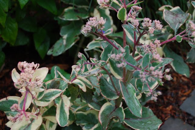 Michelle, here is pic of Sues sedum..does have a pink blush here and there so we are in keeping ! I don't remember the name , but I can post it on FB if none of you know and ask Sue to identify. The plant has Purple Emperor sized leaves..