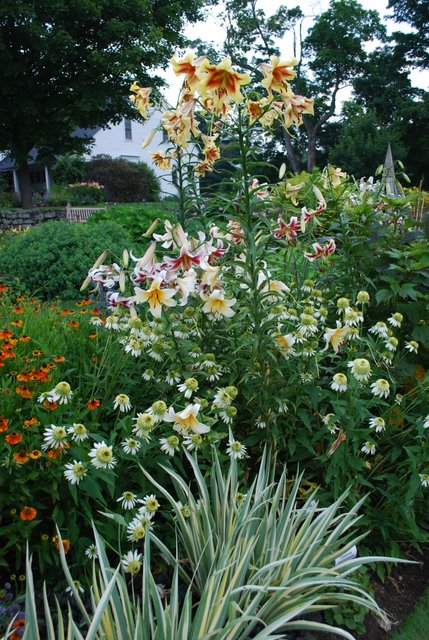 | Ach, this is one of those evenings when I can't seem to get warm. It was overcast all day , and the house was in high 50's when I got home from the awfice. DS and I are bundled up, though he is hanging out upstairs , where it is likely 10 degrees warmer. No rain this weekend! Might be able to get this rose pruning gig off the ground. 'bug, thank goodness all is well with the family after the rear-ending event. Jeesh. Just what they don't need. I remember when DD and I were very gently rear-ended when she was a student driver ..she cried and made me drive the rest of the way home-no damage to either car, only to her psyche. I have 2 books in process Eden, and 3 if you count my Kindle book. I am really into reading history this winter, medieval history in fact. The novel I have going is 'On Blue Dolphin Street' by Sebastian Faulkes, but the pace has really slowed down in the last 25% of the book and I need to just sit down for an hour and get through it . The 2 non-fictions I am reading are 'Holy Feast and Holy Fast : the Religious Significance of Food to Medieval Women' and another more controversial book dealing with atheism that I won't bring up here. I have a book on the life of Francis of Assisi to read, and then I think it may be time for a murder mystery or maybe some Alice Hoffman. All for now. Maybe we'll get a visit from Chelone this weekend ? We need a photo that has no children in it, lol . Here's a couple from the IU7 archives. Look at that sunshine ! Idylls at Keeyla Meadows garden-Keeyla, Drema , Brenda and V.