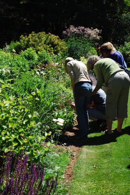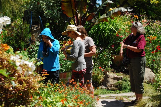 Everyone seems interested in this plant ! Digging Dog-Deborah Wigham(our hostess)Les, Brenda , V, and a sliver of Monique..