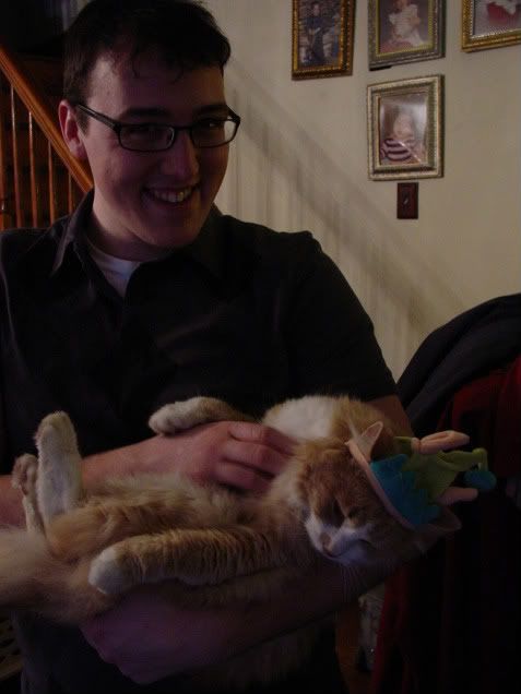 | Super photos, Drema...nice to see you and the boys! Ginger, Maggie and Kitty are so wonderfully color coordinated and look to all enjoy each other's company. Baby Elf, LOL! |