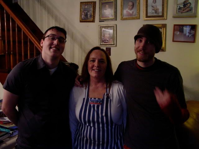 Here is a picture of me and my boys, Sean and Mike. I don't think I have another one of just us. They were here recently and I made them get in it with me. You can tell they are very different from each other:)