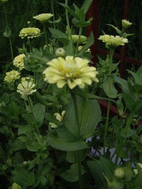 | All this zinnea talk made me dig up a picture. My favorites are the Green Envy because I love the color. I always direct sow mine. DH got this new super computer with windows Vista so I decided to use it to burn a DVD of our Florida pictures and videos. Hmmm, I've got a thing or two to learn. Woody, I like the tuteur. I'd love to have some nice ones to grow beans on. Right now I'm using 3 old tent poles for each tepee. Julie, your DD is lovely and TCS looks like such a happy kid. Kathy, cool coleus. Wow, 5". Seems weird that spring is already there. It's been a long day - the audit continues, the tape drive of the server and the duplicator both croaked today, so I'd best find the easy chair. Michelle