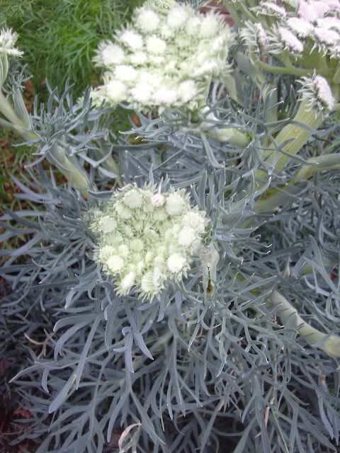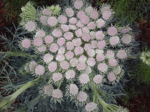 | Hidylls, It is a gorgeous 62F here today! Much more like April than March, no snow at all anymore, though we have entered the era of mud. A few more days of sunshine should dry things up considerably, and for March, I'll take it! My pots of overwintered plants are looking pretty good for the most part, as are others still in the greenhouse. Snow drops are blooming, Iris reticulata are poking up--spring is springing! But I too find it hard to correlate such beauty with such sadness. How can the sun be shining when Ei's sister has cancer? When Bruce has an incurable brain tumour? Marian, when I read Ei's news I couldn't bring myself to post about day to day happenings, which just seem so trivial when someone I care about's world has just been turned upside down. But I always enjoy reading your posts, everyone's posts, and care about you all. I like what Mary said about finding something good and of beauty each day, though I understand sometimes that is difficult. I'm wondering if customs is delaying the Lakota, because the original incorrect zip code would have been the one I submitted to the FDA before mailing it. (Have to file Prior Notice with them for each Lakota item I ship to the USA). Maybe because it's different from the zip on the package they are holding it. It is insured, so if it doesn't turn up soon I'll trace it and resend. I'm confident it will help you, and hope it arrives soon. Babs, yes of course the seeds are yours! Is that all? Really, I'd love to send any of my Idyll buddies whatever you'd like, so please don't be shy about asking for more. You should try the Moon Flower too, Oenothera acaulis var. 'Aurea'. They swirl open at dusk in a minute or two, kids love 'em! Check this link on picturetrail. Quickly hit the "next" button to get the time-lapse photography effect. Very cool plant! Moon FLower Mary I'd love to see pics of you performing too! Oh, and good news, with the snow all melted now I can get fresh Muhlenbergia capillaris seed off my plant for you. Anything else? Seseli gummiferum is a fabulous plant, see pics from last summer below. ((((Yeona)))) You've been given some great advice already, so nothing I can add. Deanne, love the robin pics! Will show the boys when they get home from the skatepark. So sorry to hear about your spill off the defective Stairmaster. How are you feeling? Martie, I'm appalled that you would get emails like that! How incredibly cowardly of that person. I've been fortunate to have received only pleasant emails from gardenwebbers, but agree with Mary there are 'all kinds' out there, unfortunately. Hope they are shamed into silence and don't bother you any more... Monique, Honey's card with the Nikko Blue (?) and the variegated grass was divine! Congrats to Les as well! How was your night out? Waving hi to all, and sending hugs and good vibes to all dealing with sick loved ones... Taryn