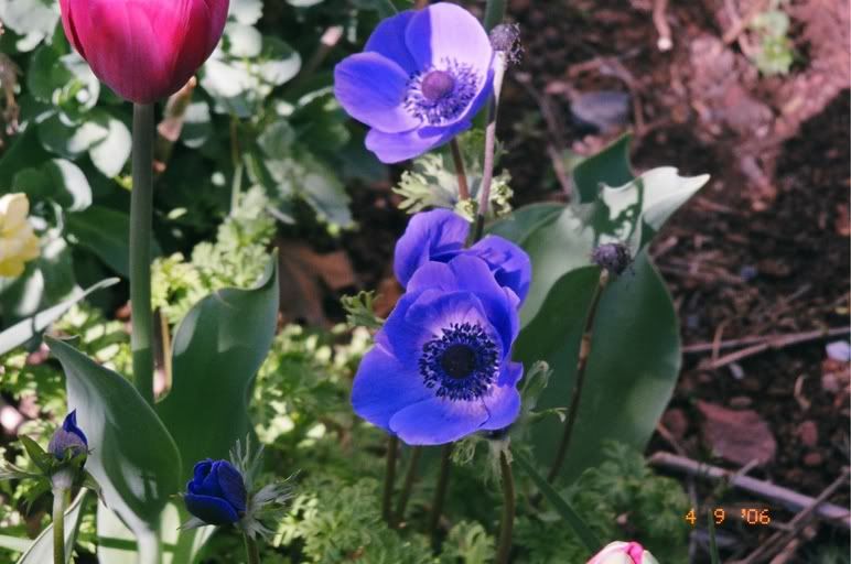 | Oh what a cold scene those photos show Marie! Sue, I hate asking and showing my plant ignorance......but what is the purple blossomed plant in your photo? The boys are asleep, but one is stirring and mumbling so I can't upload anything, right now, to picturetrail to help spring along..but maybe later I'll be allowed some more computer time. Oh....if you ever babysit twins....demand that their parents do NOT feed them prunes & apples baby food the day before they are to be with you for the day. Just guess why I suggest that................. ;oP Okay, better go before any wailing begins and wakes the brother.... T. |