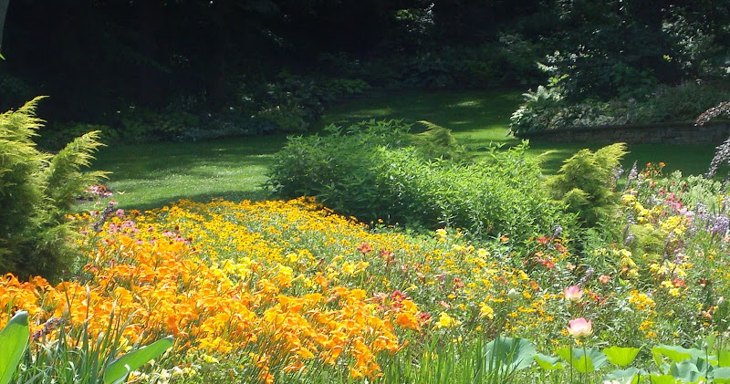 | I do have a bit of orange in my gardens. It goes with the pinks and lime greens that I love. I'll have to look for some orange container combo photos but for now...