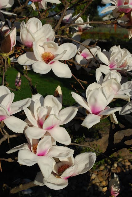 | We needed to go to the city yesterday to return our sump pump which quit working - not a good time for that. We lucked out, the 1 year warranty was to expire on 3-25. A new sump pump,four large bags of potting soil, a new spring purse, some cannas, a variegated African violet and a pair of shorts were a few of the purchases - it sounds like I think spring has arrived. We got home late and I remembered that I hadn't prepared for my Sunday School class. Plus the lost hour of sleep. I think a nap will be in order for the afternoon. I've never had luck with African voilets, but it was so pretty and for $2.50 its worth a shot. I need Marian's advice. My house is somewhat disastrous too. Like 'bug, I like things to be somewhat orderly going into gardening season. We have nearly completed the bathroom project. Rick needs to install the newly refinished baseboards and the roman shade remains untouched but that's about it. 'bug, great news for Phoebe with spring arriving especially. Sorry Chelone, but I love DST. How is your bathroom project coming along? Kathy, its hard to believe that you have rose buds already. Great shots from the winery garden. I like the stepping stone/grass path and the magnolia is so pretty and spring-like. Marian, sorry about the deer damage. I had lots of rabbit damage this winter. I guess I'm going to need to work harder on caging shrubs. Some say that woodies are the way to go for a low maintenance garden, but I'm not so sure. Cyn, what types of plants have you ordered? I haven't ordered a thing. Woody, the project is coming on nicely. As for lily leaf beetles, I've not had a problem. I took a spin around the gardens yesterday, at least the ones where some of the snow had melted. Of course I had to go through snow that was nearly knee deep to get there. There was a lovely patch of sedum 'Angelina' The grass is just as green as ever under the snow and I have quite a few evergreen plants in my garden, so we are getting there. Michelle "A friend in the garden is a treasure whose worth cannot be measured except by the heart."...Anon |
