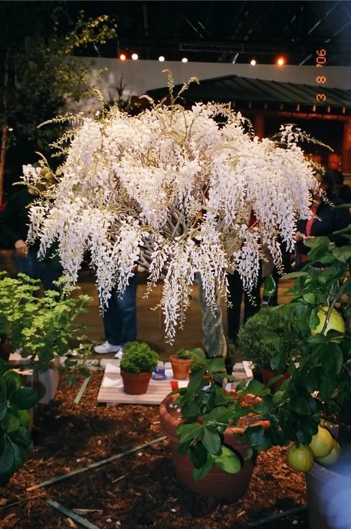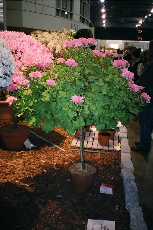 | Boy, Im feeling "hung over" today – the time lag is hitting hard today – means for some mean caffeine for me. Well, Deanne, Im glad I gave away the Helianthus Lemon Queen that WFF sent me in error – I knew it grew large (& I don’t have much yellow in the garden anyhoo) so now Im double glad – since you think it’s taking over yours along with the golden hops & hakonechloa! My gardens are too tiny to stand anything invasive or "vigorous" as the mailorder places prefer to understate. 6,000 lbs of compost? that’s a lot of slinging, Deanne! Wow. I always wonder when the right time is to lay it in the spring – if you’ve got seedlings coming up, do they grow right thru the compost or do they get smothered by the layers added? ‘Course we wont talk about what damage my big feet do to those same seedlings. I think I actually have some papaver seedlings coming up which is very exciting as I’ve struggled with them in years past so I don’t want to damage them. Re the flower show standards (can see better at the link), they are all at least 4’ feet tall – some were 5’ or larger – I took the close-up of the pelargonium because I was curious as to which type it was they grew – the flower is a bit different. And the wisteria – isnt that magnificent? I agree re forcing these things – they all must come from very fantastic greenhouses. I did not see any fuchsia standards (altho there’s a huge bush in one of the landscape shots). And as you can tell, I was mostly taken by the bulbs – and took close ups to take a record of the names of some for future possible planting. Never been a fan of hyacinths – but those Jan Bos caught my eye (they call that "red" in most catalogs – but it is not red in person!) and they went on my list to try. Sue, hope the guest doggie is still behaving herself! What do your Nick & Zoe think of her? Michelle – that rain barrel is really neat – and even neater you have a DH who even thinks of things to suggest making like that!! We got a little bit of your rain (about 1/2 inch) which is better than nothing – lots of wind today & Im wearing "woolies" again – cold for the next several days. . . . Marian, I hope your VA refund arrives soon so you can buy the new oven – it would be a great addition to your day to get back to regular cooking and baking, I imagine. Well, I must go in search of more caffeine – it’s going to be a very long day. --Cindy |