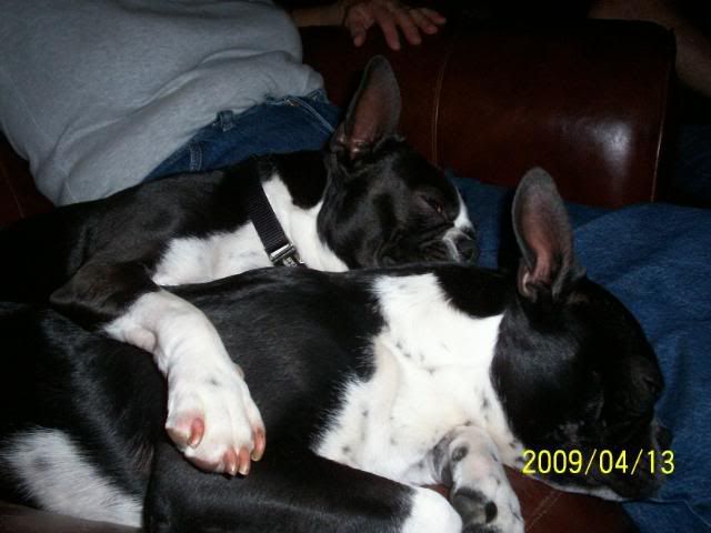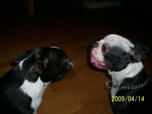 | Good morning all! Thanks for the comments about dogs and their lives. Our DD is a great believer in being the head pack thing, and her dog, absolutely impossible when she got her, is now a sweetheart, still kind of hyper but very well behaved. I have taken many cues from her with Ajax, and have noted already that Tucker responds well to someone else being the boss! Taking his face in my hands and delivering a stong "No!" has already worked on several things, just basic ground rules here. I think the issue with this pup is that his family, while they loved him to peices, had little time and no money to spend. He arrived with a tattered blankey and a choke collar (that will be ditched today!) a vet record that showed he has not had any shots etc. since the age 6 weeks - so that regimen will be starting from scratch today, and the information that he eats "people food" and macaroni and cheese is his favourite. Tucker is about to enter into a profound lifestyle change! His previous family said that his expression of jealousy was to leap up into the lady's lap whenever she held her baby. After three months of this, they decided to let this dog go. They have two tiny kids plus a large Boxer, and I think the Boston was simply trying to assert his place as second from the bottom of the pack! He is not aggressive , doesn't growl or snap or bite, seems like a misguided big baby trying to defend his spot. Morning demands are upon me so I will check back later - after we see the vet! Cheers, Julie |