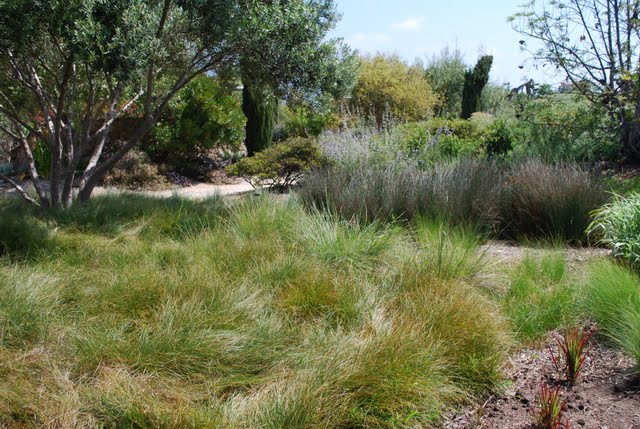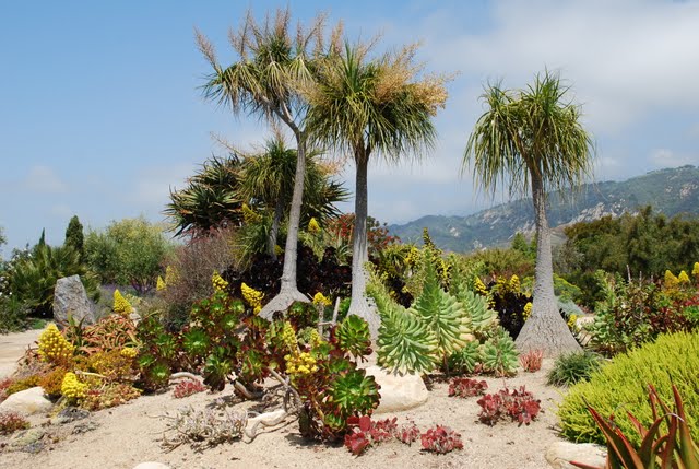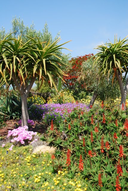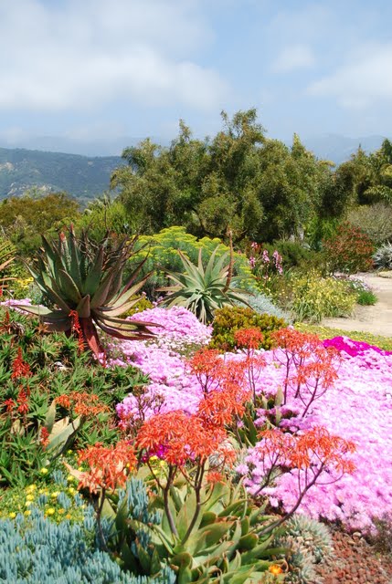 | There are a few photos from my visit to a garden center in Carpenteria, a seaside town a few miles to the south of SB.They had an enormous selection of succulents , which would have made me happy as can be on it's own, but when I walked around the back of the building and saw the display gardens..wow. It was just past high noon so photo taking was a challenge.