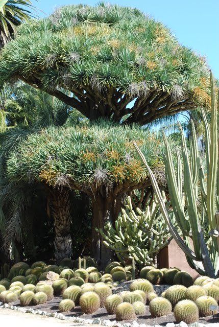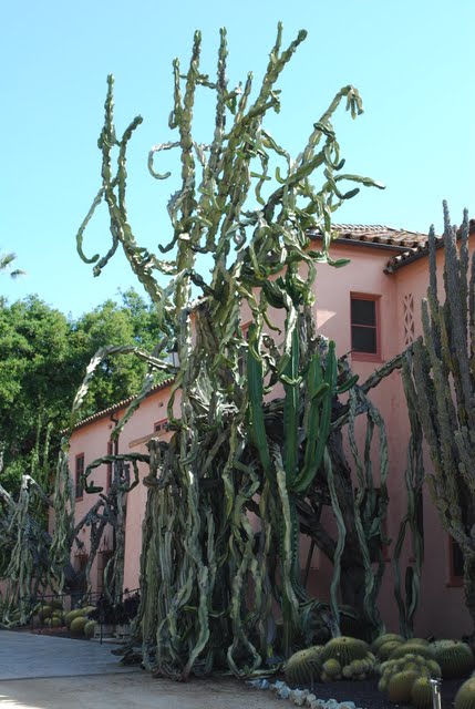 | An enjoyable day was had here in zone 10,capped off by a nursery crawl—the results are on the counter in my hotel room loo. One of the nurseries had a rose sales area unlike anything I’ve encountered thus far, and it was in peak bloom; just dumb luck that I stumbled upon it. Lotusland ..wow . Because the garden is an estate situated in the most tony area going in these parts (Montecito) their use permit is very resrictive. Unless you are a member, all visits are docent led (small groups of about 8 which was nice) and the walk is two miles in 2 hours. Not the best photo taking situation. I ended up putting my camera back to auto since I didn’t have time to mess with the settings. Membership is 75 a year, and you can wander around at will without admission twice, and as many other visits as you wish for 20 bucks.I’m definitely going to come back, and will buy a membership when I do. In any case here are few of the more decent pics I took, and I can tell you they in no way do the place justice. A very unique and beautiful place. Tommorow the SB Botanical Garden … |