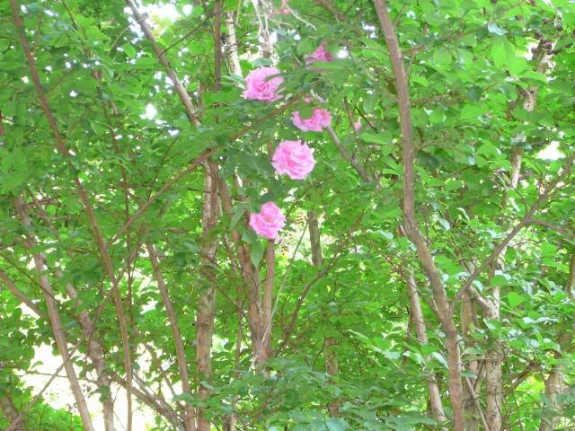 I had taken the camera out to get a shot of Complicata, but it doesn't bloom until the sun is on it and it faces south so... a while yet. A single petaled wild looking rose that only blooms once a season. I did notice Climbing Pinkie has nicely smothered the lampost... and the white clem that used to be the star there. A little remains on the driveway side.