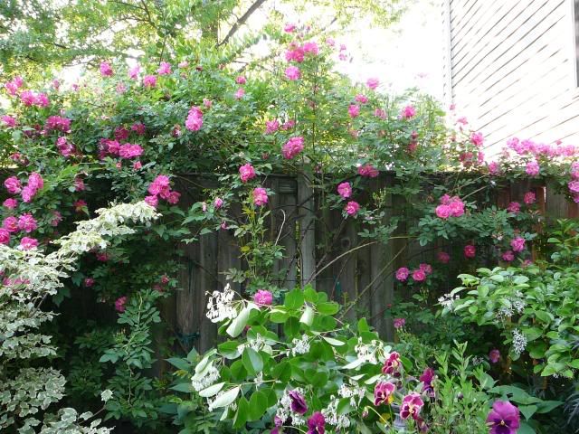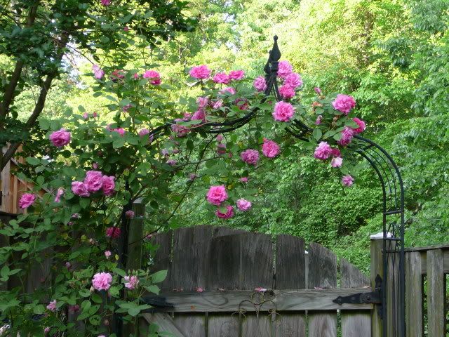 Here's Wm. Baffin really starting to take off w/ the other roses, the clematis mixing in should be in full bloom in about a week: