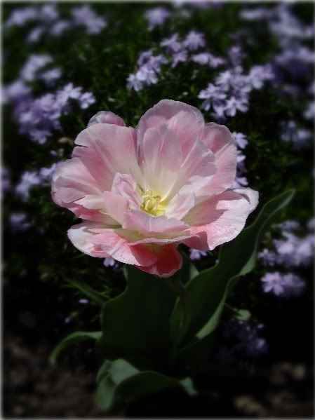 | Cool, windy and rainy today. I'm going to help DD with her garage sale this a.m. I think my job will be to keep Kenzie entertained. If the weather shapes up her and I will go visit a garden that is on a farm near their place. They sale plants for a local charity and you can tour the lady's garden as well. Kenzie will enjoy it I'm sure. Jerri, it is hard to see a little life end after such a short time. Cindy, a nursery trip with another Idyller is sure to be fun and expensive ;o) 'bug, is the heart surgery going to be this summer? PM2, what a shame that such a lovely spot will be decimated by developers and to lose a nursery as well. You can never have too many of those ;o) This garden is looking particularily pretty lately. We see this out our kitchen windows. I cropped out all the farm machinery that is sitting around these days. I have most of my tulips here as the rabbits don't seem to bother them so much here.